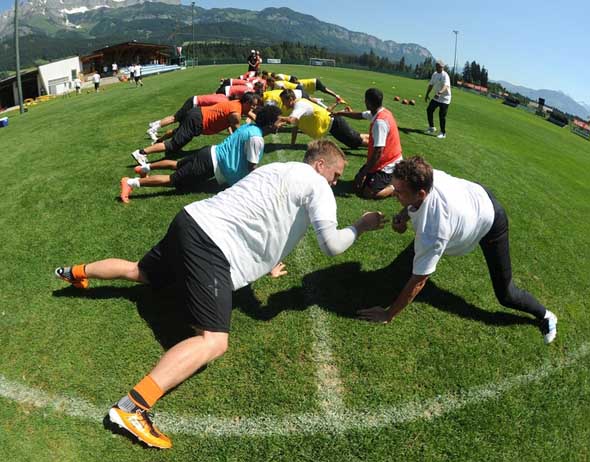 Футболистам же «Шахтера», которые сейчас проводят сбор в Тироле, надо не только переносить жару, но еще и проводить по две полноценные тренировки в день. Причем, учтите, начало сборов – это в первую очередь серьезные физические нагрузки.